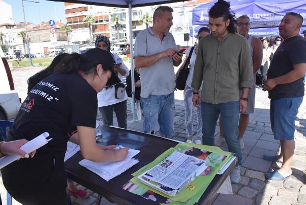 Ülke genelinde lösemi ve diğer kanser tedavilerinde hayati önem taşıyan protein ihtiyacını karşılamak amacıyla vekaleten kurban bağışları alan LÖSEV, İzmir'deki Alsancak Gündoğdu Meydanı'nda LÖSEV İyilikler TIR'ından hasta çocukların ailelerine yardım dağıttı. Kurban Bayramı öncesi yüzlerce aileye et yardımında bulunduklarını anlatan LÖSEV Halkla İlişkiler Koordinatör Yardımcısı Gamze Berçin Edirne, TIR'a gelen ailelere oyuncak, kırtasiye ve hijyen malzemelerinin bulunduğu paketlerden verdiklerini açıkladı. Ege Bölgesi'ndeki tüm ailelere yardım ulaştırdıklarını belirten Edirne, "Bugün vakfımıza kayıtlı lösemi ve kanser hastalarına yardımlarımızı ulaştırıyoruz. TIR'ımız aslında tüm yıl boyunca Türkiye'yi gezmeye devam ediyor. Bugün İzmir'deyiz ama bundan sonraki rotamız Kuşadası, Didim, Marmaris, Fethiye şeklinde devam edecek. Ege Bölgesi'ndeki tüm ailelere yardım ulaştırıyor alacağız" dedi.