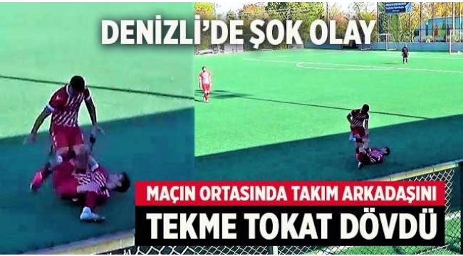 Galatasaraylı Marcao ile Kerem Aktürkoğlu arasında sahada yaşanan kavganın bir benzeri Denizli'de cereyan etti. Süper Amatör Lig'de mücadele eden Değirmenönüspor'un iki futbolcusu, pas atmama tartışmasının ardından maçın ortasında tekme tokat kavga etti.