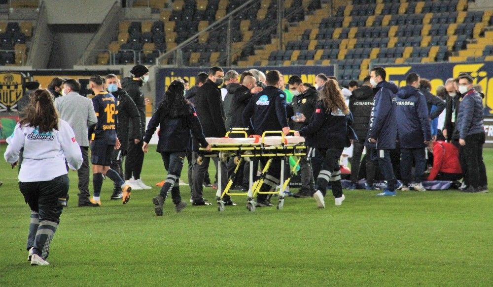 Süper Lig'in 16. haftasında Ankara Eryaman Stadı'nda karşı karşıya gelen Ankaragücü-Malatyaspor maçında başı dönen ve bayılan Malatyasporlu Youssuf Ndayishimiye yere yığıldı.
