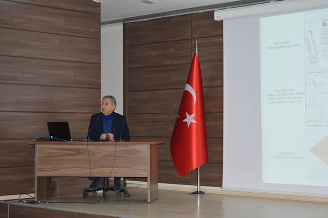 Prof. Dr. Çevik, “Sadece coğrafyayı tanımak yetmiyor, tarih bilgisi de önemli yer tutuyor. Çünkü böyle bir konuda hangi kaynakları referans alacağımız çok önemli. Malazgirt Savaşı ile ilgili 5 dilde yazılmış 40’ın üstünde kaynak metin var. Grekçe, Ermenice, Süryanice, Arapça, Farsça ve en çok Arapça metin ile 30’a yakın Malazgirt anlatısı var. Bu metinleri analiz etmek için savaşın nerede olduğunu, 150 km’lik alanı daraltmamız gerekiyor. Araziyi, savaşın geçtiği alanı ve kaynakların anlatısını coğrafyaya uyarlamalıyız. Savaşa dair obje, insan kayıplarına dair verileri somutlaştırmalıyız. Temel kaynaklara önem vererek, hiçbir kaynağı göz ardı etmeden incelemeliyiz. Bu çerçevede özellikle yeterince değerlendirilmediğini düşündüğümüz Bizans kaynakları en önemli yeri tutmaktadır. Nitekim savaşın tek görgü şahidi Bizanslı bir tarihçi olan Attaliates’dir. Ayrıca Osmanlı kaynakları da geç dönem olmasına rağmen yörenin topoğrafik ve demografik yapısını anlamak için ilginç ipuçları vermektedir. Örneğin, bu kaynaklardan 1540 tarihli tahrir defterinden Malazgirt’e bağlı ‘Selçukluviranı’ adında bir köy bulunduğunu öğrendik. Bu çok enteresan belki de Malazgirt savaşındaki Selçuklu şehitleri sebebiyle bu adı aldı bilemiyoruz o yüzden bölgedeki eski mezarlık alanlarını tespit etmeye çalışıyoruz. Nitekim eski bir ermeni köyünde çok büyük bir Müslüman mezarlığı tespit ettik. Bu sene orada da bir çalışma yapmayı düşünüyoruz. Çalışmalarımızda, yerelden elde ettiğimiz bilgilerle eski yol hatlarını ve savaşı modellerken tahmin ettiğimiz yerlerle de sondaj kazılarını yaparak somut veriler bulmaya çalışacağız” diye konuştu. Konuşmasının ardından Prof. Dr. Çevik, katılımcıların sorularını yanıtladı.