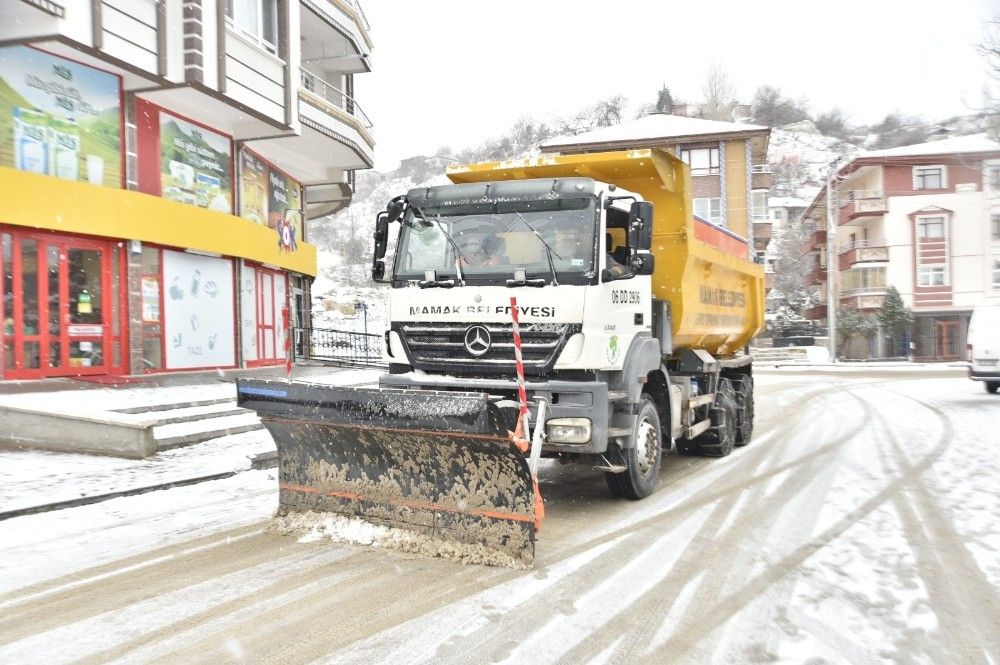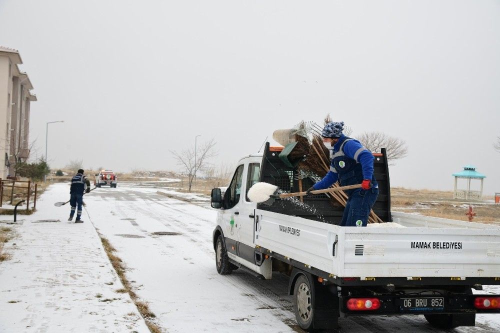 Mevsimin ilk karının Başkent'te düşmesiyle birlikte Mamak Belediyesi'nin oluşturduğu bin kişilik kar ve buzla mücadele ekibi çalışmalara başladı