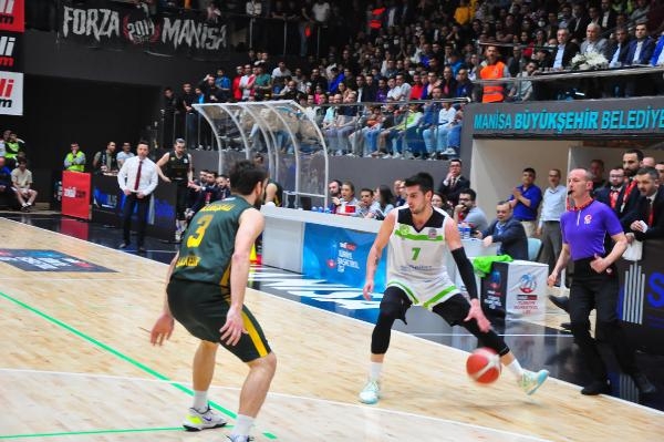 Tarık Almış Spor Salonu'nda tıklım tıklım dolu tribünler önünde oynanan maçı baştan sona önde götürüp ilk periyodu 30-15, devreyi 50-30, üçüncü periyodu 75-59 üstün bitiren Manisa ekibi, taraftarına çifte bayram yaşattı. Son 11 maçın 10'unu kazanıp 29 haftada 23 galibiyete ulaşan Manisa BŞB'de Watkins 20, Williamson ve Mustafa Baki 18'er sayıyla galibiyete katkı yaptı. Henüz 5 yıl önce kurularak Manisa'yı basketbolda Süper Lig'de temsil edecek ilk ekip olmayı başaran yeşil-beyazlılarda taraftarlar salonu, "Şampiyon Manisa" tezahüratlarıyla inletti.
