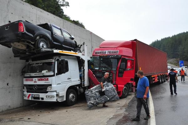 MANİSA Sabuncubeli Tüneli çıkışında 4 TIR ile 3 otomobilin karıştığı zincirleme kazada 2'si çocuk 5 kişi yaralandı. Kaza nedeniyle bir süre ulaşıma kapanan yolda uzun araç kuyrukları oluştu.