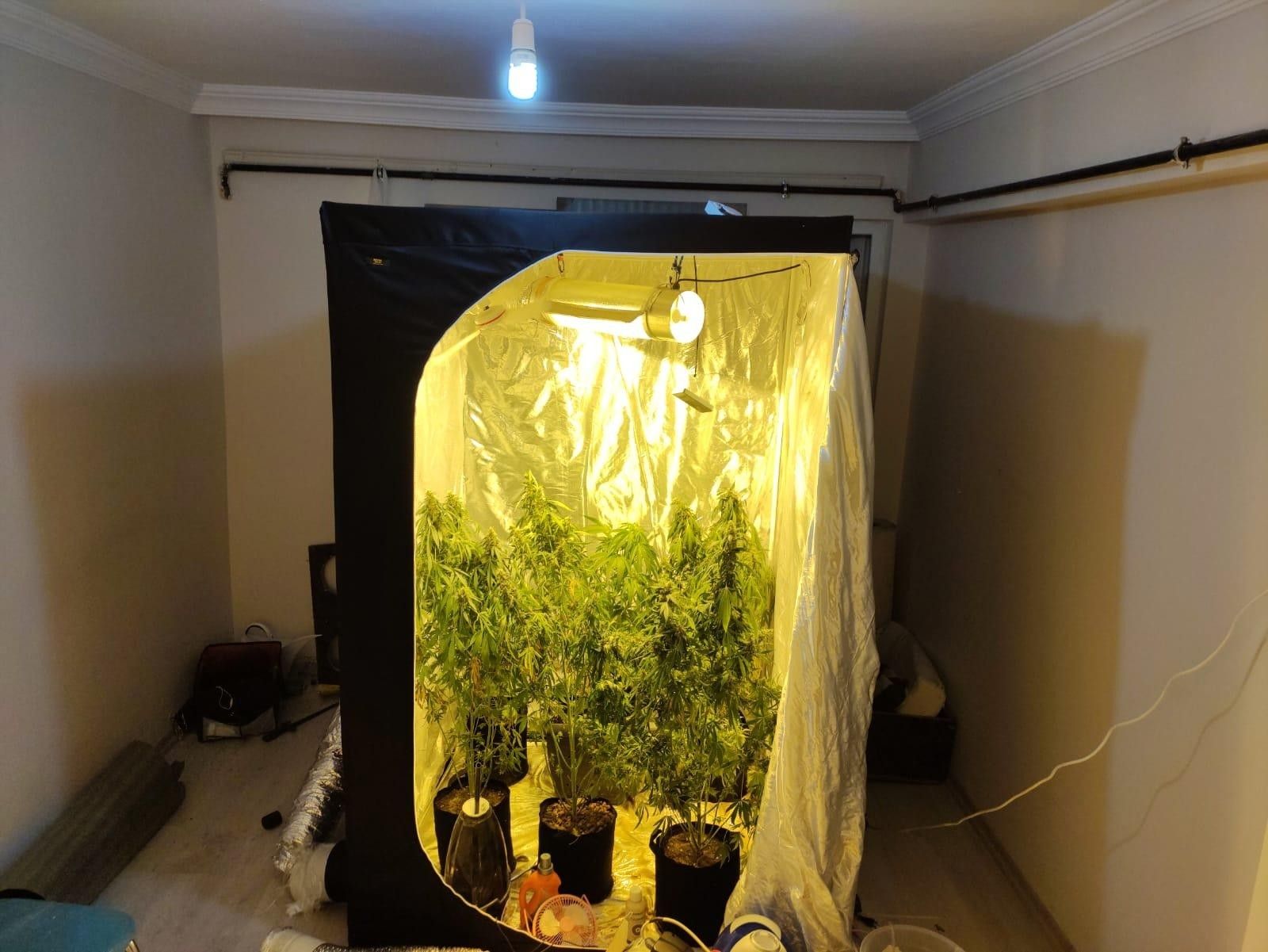 Manisa İl Emniyet Müdürlüğüne bağlı Narkotik Suçlarla Mücadele Şube Müdürlüğü ekipleri başarılı bir operasyona daha imza attı. Manisa'da uyuşturucu kullanımı ve ticaretinin önüne geçilmesi kapsamında yapılan çalışmalarda Yunusemre ilçesindeki bir adrese baskın düzenleyen ekipler 6 kök Hint keneviri, 31,87 gram esrar maddesi, 3,53 gram metamfetamin maddesi, 1 adet uyuşturucu madde kullanmaya yarayan aparat ile uyuşturucu madde imal etmek amacıyla kullanılan; kabin, vantilatör, ışıklandırma sistemi ve havalandırma borusu ile termometre, fan ve bitki gübresi ele geçirildi.