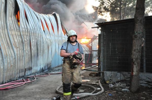 Havanın kararmasıyla, yangına sadece karadan müdahale edildi. Alevler geceyi aydınlatırken, yangına çevre ve il ve ilçelerden destek geldi. İzmir Büyükşehir Belediyesi İtfaiye ekiplerinin de yer aldığı çalışmalarda, yangına, 92 personel, 52 itfaiye aracı, 12 su tankeri ve 7 iş makinesiyle müdahale edildi. 85 dönümlük arazi üzerine kurulu tesisin tamamı yanarken, itfaiyenin dikkati sayesinde, yüzlerce tavuk ve horoz yanmaktan kurtuldu. Ekipler, yangının ulaştığı kümesteki 350'ye yakın tavuk ve horozu, kırdığı duvardan tahliye etti, 1 tavuk öldü. Tavuklar, tesis çalışanları tarafından şirkete ait araçlarla güvenli bölgeye götürüldü. Yangının büyüklüğü, gün ağarınca ortaya çıktı, binlerce tonluk geri dönüşüm ürünü küle döndü.