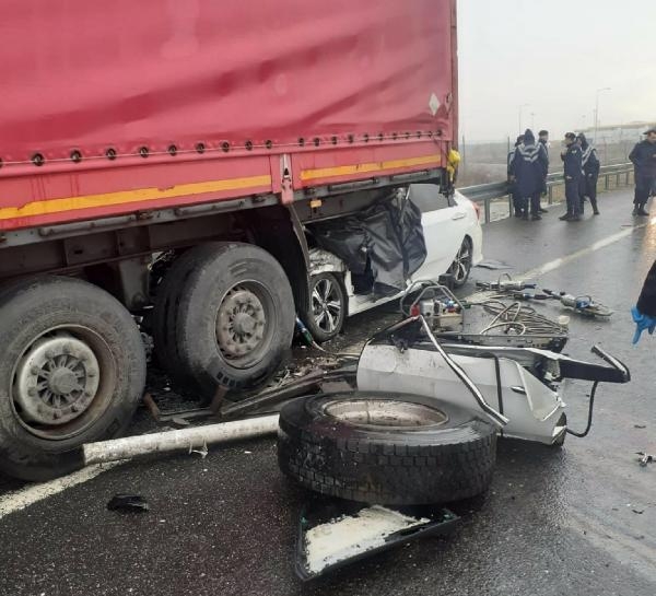 MANİSA'da, yağış nedeniyle kayganlaşan yolda kontrolden çıkarak TIR'a çarpan otomobilin sürücüsü Ferit Özpolat ile aynı araçtaki İzzet Özpolat (41) yaşamını yitirdi, 1'i Ukrayna uyruklu 2 kadın ağır yaralandı.