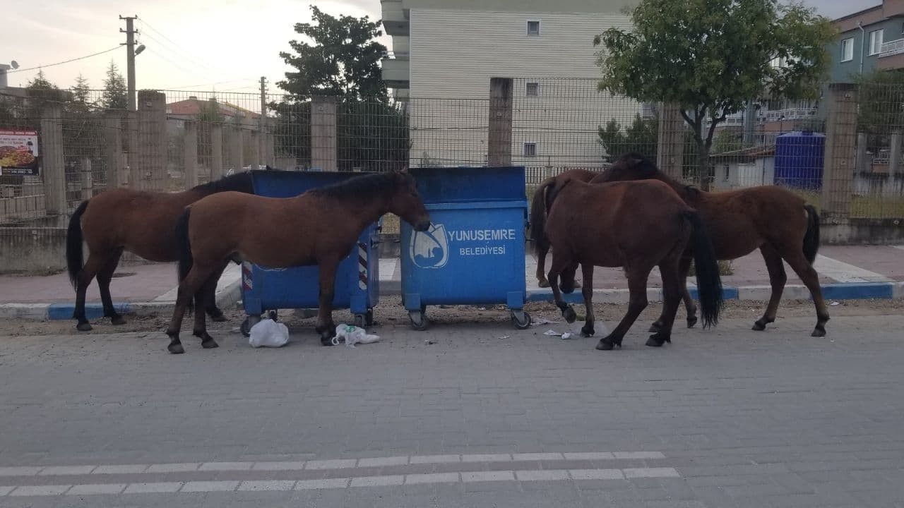 Manisa'nın Spil Dağı Milli Parkında yaşayan yüzlerce Yılkı atından bazı sürüler, merkezdeki Yunusemre ilçesine inmeye devam ediyor. Her geçen gün ilçe merkezindeki sayıları artan Yılkı atları Manisalılar için adeta bir sokak hayvanına dönerken atların merkezde özgürce dolaşması bazı vatandaşları memnun ediyor. Trafikte aksamalara neden olsalar da sürücülerin sabırla atların geçmesini beklediği Manisa'da Yılkı atları çöp konteynerlerinden ve otluk alanlardan beslenmeye çalışırken sürü halinde dolaşmaları ortaya renkli görüntüler çıkmasını sağlıyor.