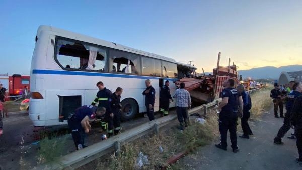 MANİSA'nın Turgutlu ilçesinde işçileri taşıyan servis otobüsünün kamyona arkadan çarptığı kazada ölü sayısı 2'e çıktı.