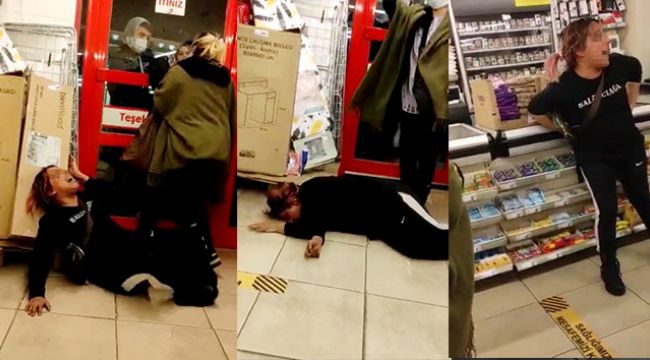 Hırsızlık şüphelisi 2 kadın, hırsızlık yapmadıklarını, kasaya para ödemeyi unuttuklarını belirterek, kendilerini yerden yere attı. Şüphelilerinden birisi, hamile olduğunu ve kasiyerin kendisine uçan tekme attığını iddia etti. Öfkeli kadın, bebeğinin düşmesi durumunda market çalışanlarını da pompalı tüfekle öldüreceğini söyleyip tehdit etti. Market çalışanlarının ihbarı üzerine markete polis ekipleri geldi. Bu kez polis ekiplerini karşısında gören kadınlardan biri, bayılma numarası yaptı. Market çalışanları ve 2 şüpheli kadın, birbirlerinden şikayetçi olurken, darp raporu alınmak üzere hastaneye götürüldü. Burada yapılan tetkiklerde, kadının hamile olmadığı ortaya çıktı. Daha önceden de çok sayıda suç kaydı bulunan 2 şüpheli, ifadeleri alınmak üzere karakola götürüldü. Markette yaşanan panik anları ve yalancı hırsızların tiyatro gibi hırsızlık oyunu kameralar tarafından görüntülendi.