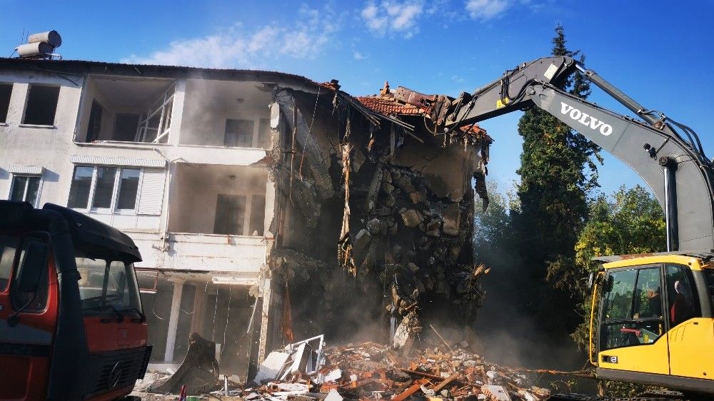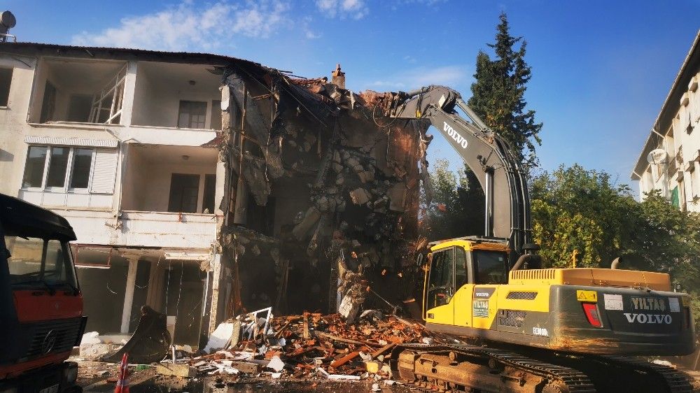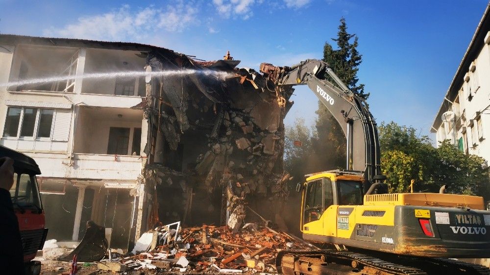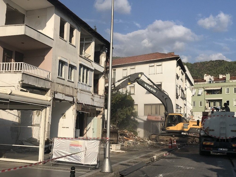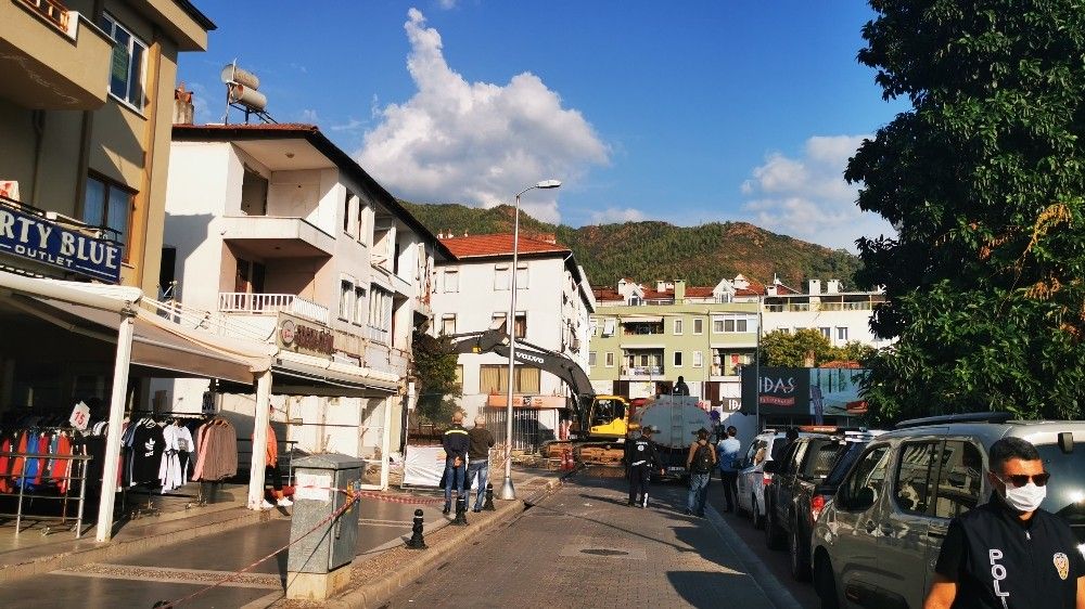 Marmaris merkez ve civarında depreme dayanıksız olduğu tespit edilen 35 yapının, Afet Riski altındaki alanların dönüştürülmesi hakkında kanuna göre yıkım çalışmaları başlatılırken, Tepe Mahallesi'nde bulunan 3 katlı ve 15 daireli bir apartmana yıkıma giden ekipler içerisinde 93 yaşında hasta bir kadın olduğu gerekçesiyle yıkımı bir gün ertelenmişti. Belediye ekipleri tarafından eşyaları toplanan ve taşınan aile çıkınca yıkım gerçekleşti.