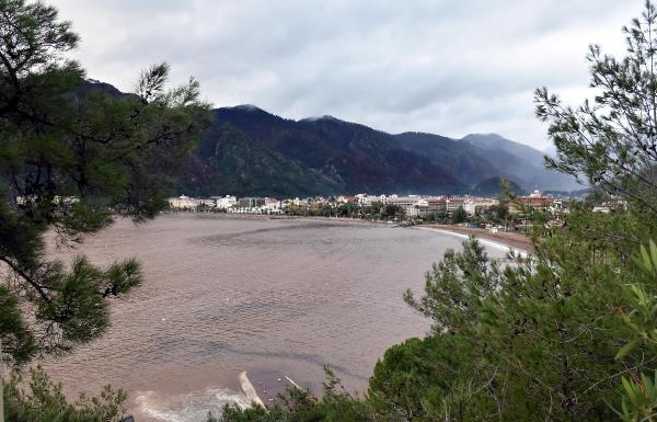 Marmaris'te önceki gün başlayan ve 36 saat aralıklarla devam eden kuvvetli yağmur nedeniyle denizin rengi, kahverengiye döndü. Yağışla dağ eteklerinden denize çamurlu su taşındı. Marmaris Körfezi ile İçmeler Mahallesi'nin kıyı kesiminde denizin rengi, çamurlu sudan dolayı kahverengi oldu. Atatürk Caddesi sahili ve Kordon Caddesi'nde yürüyüşe çıkanlar, denizin bu halini fotoğraflayıp, sosyal medya hesaplarından paylaştı. 36 saat sonra etkisini yitiren kuvvetli yağış sonrası metrekareye 178 kilogram yağmur düştüğü duyuruldu.