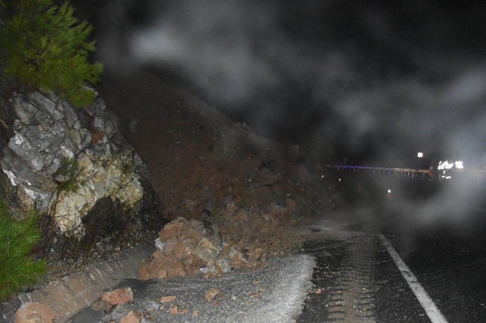 Bugün gece saati 21.45 sularında meydana gelen heyelanda çift şeritli yol trafiğe kapandı. Muğla İl Emniyet Müdürlüğü ve Marmaris İlçe Emniyet Müdürlüğü, Marmaris İlçe Jandarma Komutanlığı'na bağlı ekipler olaya hemen müdahele ederek Muğla'dan kamyon ve kepçe talep etti. Karayolları şube Müdürlüğü'nden gelen ekipler ile Trafik Bölge Müdürlüğüne bağlı polisler yolun temizlenerek tek şeritli olarak trafiğe geçişini sağladı.