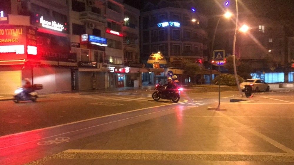 Marmaris ilçe Emniyet müdürlüğüne bağlı motorize devriye ekipler ve İlçe Jandarma Komutanlığına bağlı devriye ekipler kısıtlama bitiş saatine kadar sokaklarda dolaşarak vatandaşları uyardı.