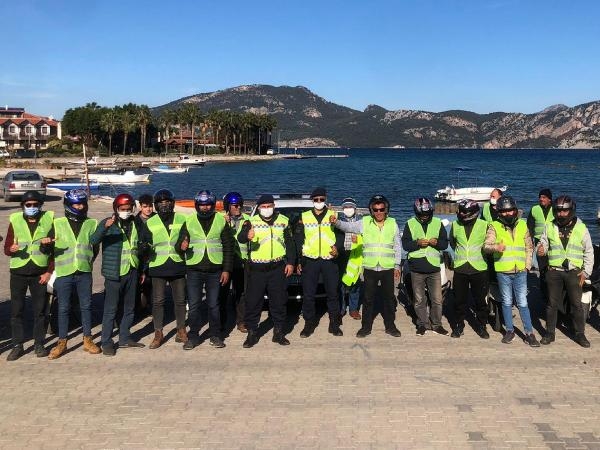 Marmaris'te motosikletlilere kask ve yelek dağıtıldı