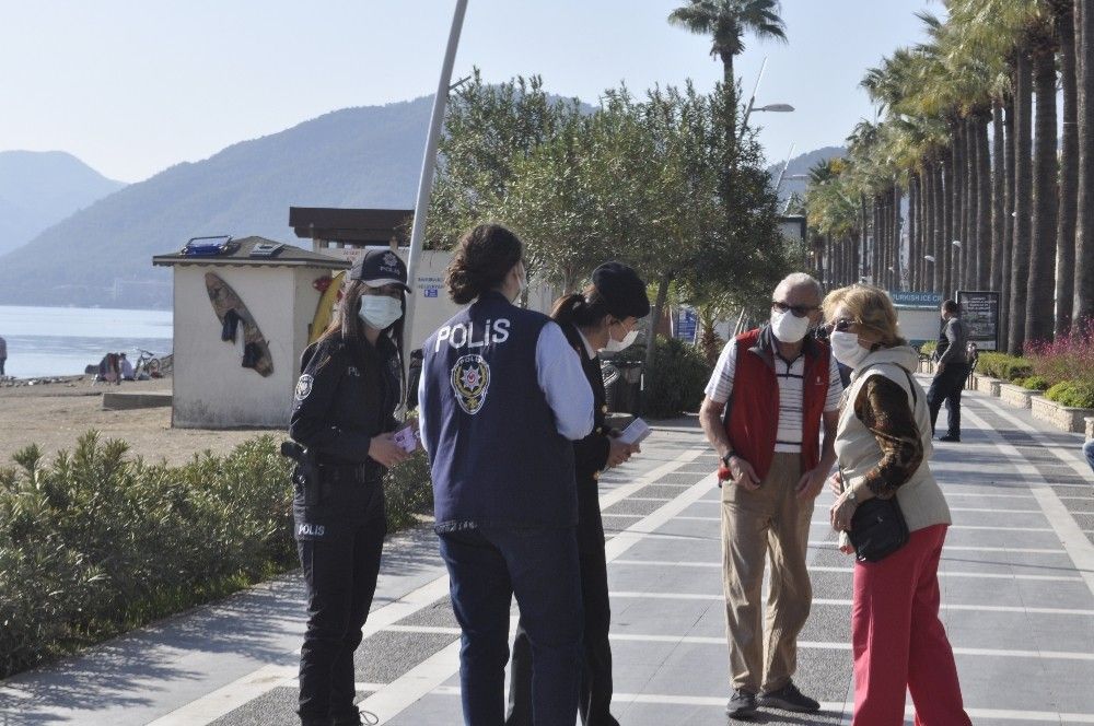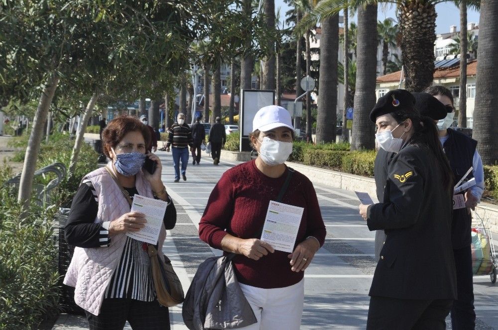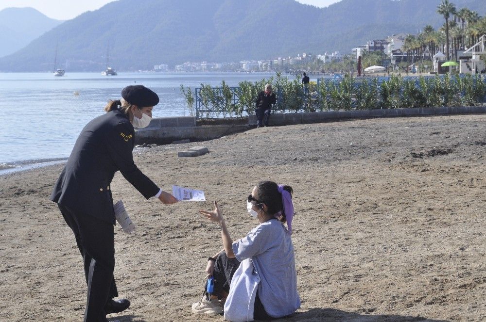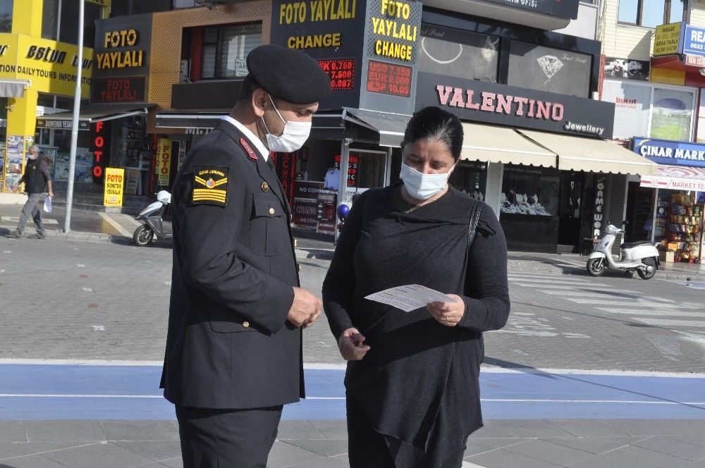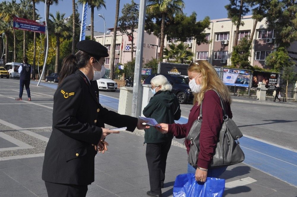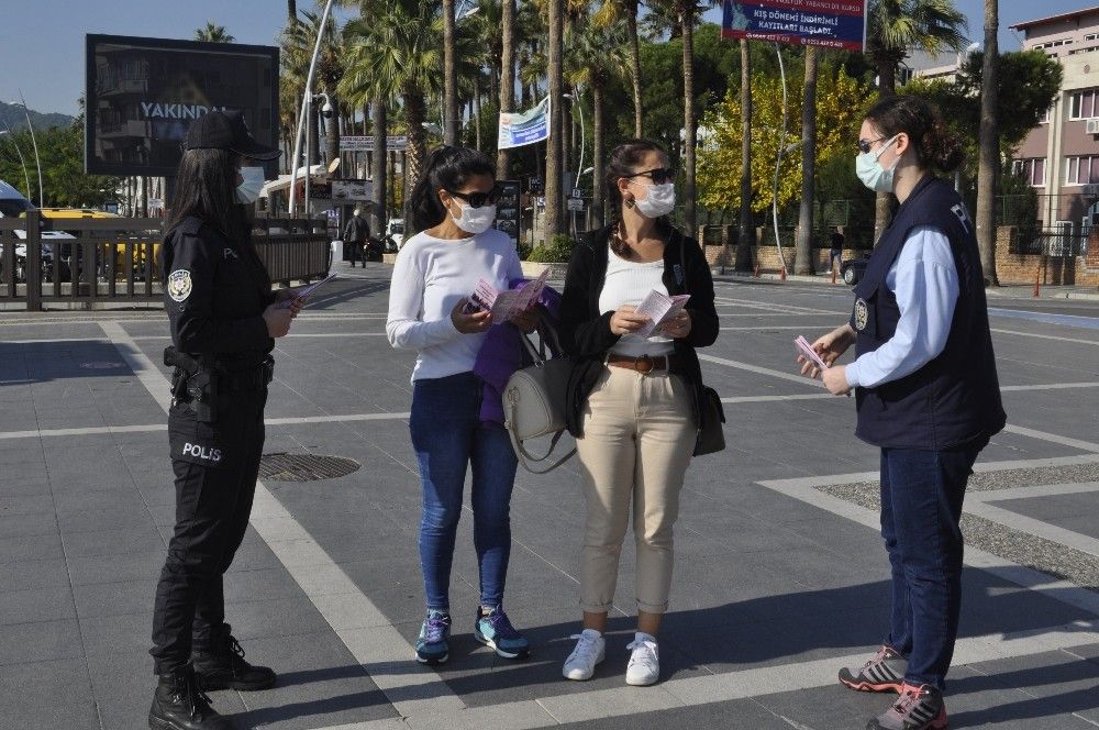 Marmaris'te Polis ve Jandarma kadına yönelik şiddete karşı broşür dağıttı