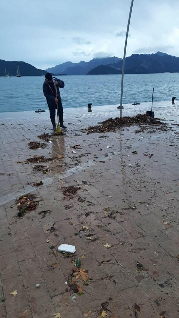 Marmaris'te dün gece etkili olan sağanak yağmur nedeniyle Marmaris Belediyesi ekipleri gece boyunca mesai yaptı. 24 saatte metrekareye yaklaşık 109 kilogram yağışın düştüğü ilçede Temizlik İşleri ve Fen İşleri müdürlükleri personeli başta olmak üzere Zabıta, Park ve Bahçeler, Destek Hizmetleri müdürlerinin yanı sıra diğer birimlerin çalışanları sahada görev yaptı.