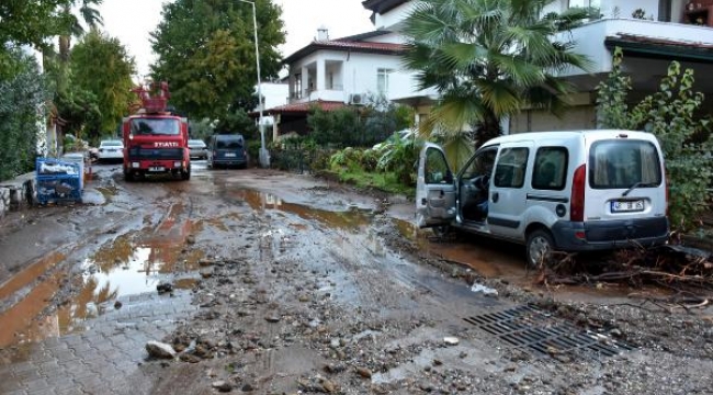 Marmaris'de dün aralıklı devam eden sağanak saat 22.30 sıralarında şiddetini artırdı. Marmaris'e 11 kilometre mesafedeki turistik İçmeler Mahallesi'nde yaz ayında yanan ormanlık alanlardan inen çamurlu sular dereleri taşırdı. Cadde ve sokaklar dereye döndü. Yağmur nedeniyle tepelerdeki, gevşeyen toprak ve kaya parçaları ve yanan alanlardaki kesim yapılan bölgelerdeki tomruk ve dal parçaları Marmaris-İçmeler kara yoluna dökülerek, trafiğin kapanmasına neden oldu. Kayabal ve Gölbaşı Caddesi'nde derelerin taşmasıyla zemin katlardaki evleri su bastı. Park halindeki çok sayıda araç sel sularına kapılıp, suyla doldu. Palmiye ağaçları devrildi, enerji nakil hatlarının zarar görmesiyle elektrikler kesildi. Polis ekipleri çevre güvenliği alırken yolda kalan araçları kurtardı. Marmaris Belediyesi temizlik ile zabıta ve Muğla Büyükşehir Belediyesi Su ve Kanalizasyon İdaresi Müdürlüğü (MUSKİ) ekipleri yağmur altında çalışma başlattı. İş makineleri karayolunu kaplayan çamurları temizledi. Kara yoluna düşen tomruklar kaldırıldı.