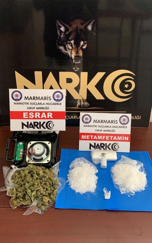 Marmaris İlçe Narkotik Suçlarla Mücadele Grup Amirliği ekipleri, İstanbul'dan yolcu otobüsüyle uyuşturucu madde getirileceği ihbarı aldı. Harekete geçen ekipler, Mustafa Münir Elgin Bulvarı üzerinde bulunan Muğla Büyükşehir Belediyesi Otobüs Terminali'nde saat 17.00 sıralarında İstanbul'dan gelecek otobüs için tedbir aldı. Terminale gelen otobüs park ettiği sırada polis ekiplerince narkotik köpeği "Coco" ile araçta arama yapıldı. Narkotik köpeği, K.O.'nun (41) önündeki küçük boy valizine tepki verdi. Valiz içinde bulunan bilgisayar hoparlörü ve su bardağı kutusu içinde yapılan aramada 5'erli paketler halinde gizlenmiş 230 gram metamfetamin, 100 gram esrar ve uyuşturucu madde kullanma aparatı ele geçirildi. İlçe'ye garson olarak iş bulmak için geldiğini öne süren K.O.'nun işlemleri ardından "Uyuşturucu madde ticareti yapmak" suçundan nöbetçi mahkemeye çıkartılacağı öğrenildi.