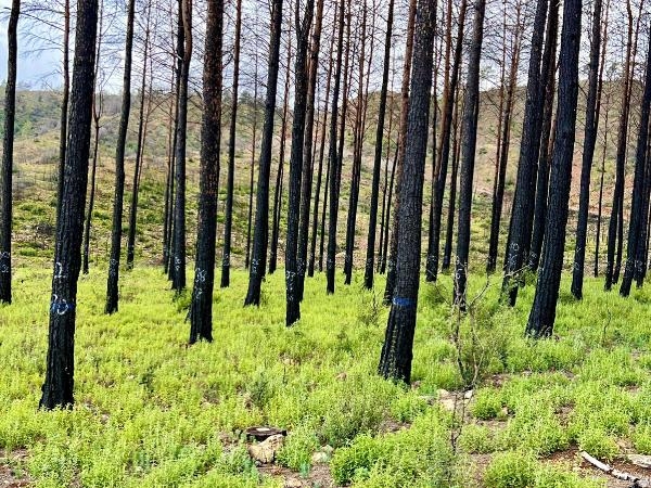 Yangının üzerinden geçen 1 yıllık süreçte doğa kendini yeniledi. Zarar gören kızılçam ağaçlarının dipleri ve yerleşim yerlerine yakın alanlar yeşillendi.