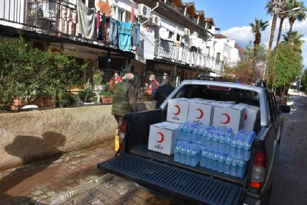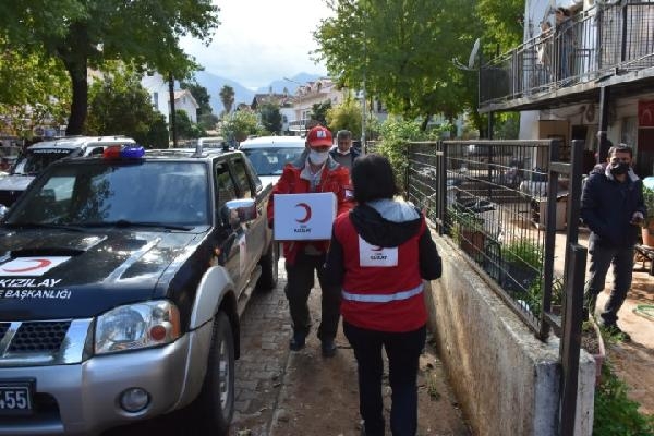 Marmaris Kızılay gönüllüleri de evleri su taşkınlarında zarar gören ailelere ziyarette bulundu. Ailelerle görüşen Kızılay yetkilileri gıda paketi, su, hijyen malzemeleri ve yemek verdi. Kızılay Marmaris Şube Başkanı Yakup Baykan, "4 gün önce bir sel felaketi yaşadık. Kızılay olarak aş evi kuruldu. Ailelere sıcak yemek servisi yapıyoruz. Kapı kapı dolaşarak ihtiyaç alıp acil karşılanması gerekenleri teslim ediyoruz. Halkımızın yanındayız. Allah bir daha yaşatmasın birlik ve beraberliğimizi bozmasın" dedi.