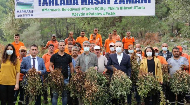 Marmaris Belediyesi, ekonomisi büyük oranda turizme bağlı olan Marmaris'te unutulan tarımı yeniden gün yüzüne çıkarmak için iki yıldır çalışmalar yürütüyor. Turgut'taki kendi tarlasına yer fıstığı eken Belediye bu yıl ikinci kez hasat gerçekleştirmenin mutluluğunu yaşadı.