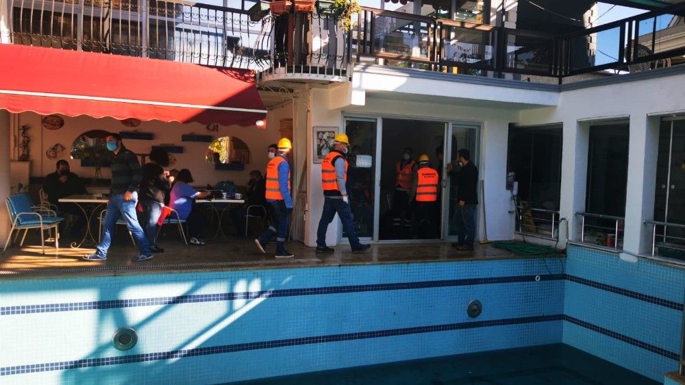 Belediye ekipleri ayrıca oteldeki eşyaları dışarıya çıkararak oteli boşaltmaya başladı.