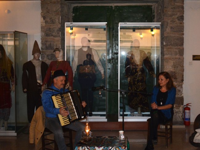 Ege Üniversitesi Etnografya Müzesi’nde düzenlenen “Büyüklere Masallar” etkinliğinde, Özlem Küçükahmetler’in anlattığı masallara İlhan Küçükahmetler’in akordeon dinletisi eşlik etti. Etkinlik, sanatseverler tarafından yoğun ilgi gördü.