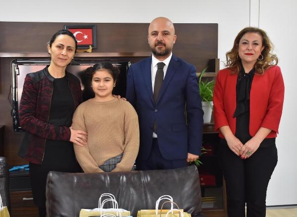İZMİR'de yaşayan 4'üncü sınıf öğrencisi Masal Gençoğlu (9), elleriyle yaptığı bileziklerden elde ettiği yaklaşık 6 bin liralık gelirle depremzede öğrenciler için hazırladığı hediyeleri ilçe milli eğitim müdürlüğüne teslim etti.