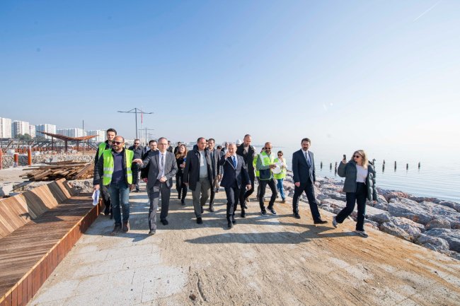 İzmir Büyükşehir Belediye Başkanı Tunç Soyer, Yaşayan Parklar projesi kapsamında Mavişehir’de yapımı sürdürülen ve 2024 yılının ilk çeyreğine kadar açılması planlanan Flamingo Doğa Parkı’ndaki çalışmaları inceledi. 100 milyon liranın üzerinde bir maliyetle kente kazandırılacak park hakkında konuşan Başkan Soyer, “Diliyorum İzmirliler bunun keyfini sürecekler ve yaptığımız ahşap deniz teraslarında İzmir’in güzelliğini keşfedecekler” dedi.