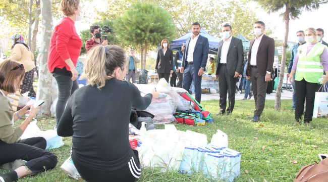 İzmir depremi sonrası Menderes Belediyesi’nin başlattığı yardım kampanyasında toplanan yardımlar Bayraklı ilçesine ulaştı