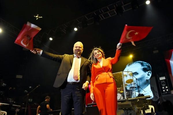 30 Ağustos Zafer Bayramı'nın 101. yıldönümü Menemen'de coşkuyla kutlandı. Menemen'in cadde ve sokakları kırmızı beyaza büründü. Akşam sahneye çıkan klarnet sanatçısı Hüsnü Şenlendirici ile Hakan Altun, izleyenlere keyifli anlar yaşattı.