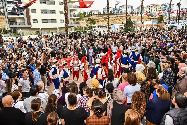 Kesilen kurdelenin ardından Menemen Belediyesi Ulukent Başkanlık ve İletişim Ofisi hizmete açıldı.(DHA)