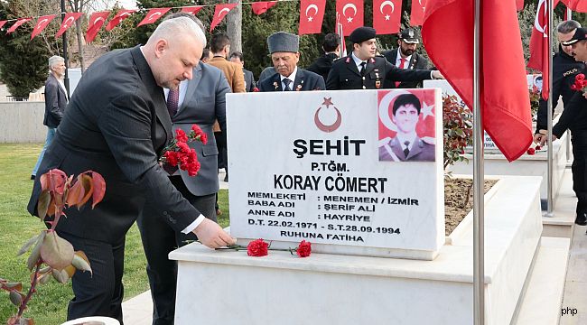 Şehitlikte düzenlenen resmi törende; Türkiye Harp Malulü Gaziler, Şehit, Dul ve Yetimleri Derneği Menemen Temsilcisi Fatih Aslan tarafından günün anlam ve önemini belirten konuşma yaptı. Okunan duaların ardından Şehit kabirlerine karanfil bırakıldı.