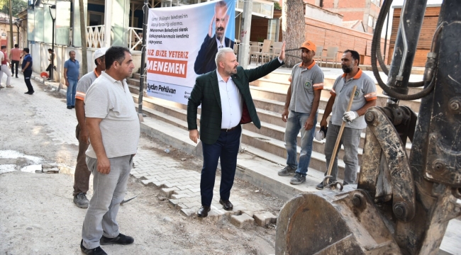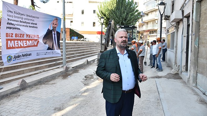 Menemen Belediye Başkanvekili Pehlivan yaptığı açıklamada İZSU tarafından açılan hendeklerin bir türlü kapatılmadığını, yapılan ikili görüşmelere rağmen bu konudan bir sonuç alınamadığını ve ilçenin aylardır toz, çamur ve yol tıkanıklıklarıyla boğuştuğunu ifade ederken, "Büyükşehir Belediyesi'nin kazıp iş bitince bir türlü yaşanılır hale geri getirmediği yolları, kendi irademizle ve özkaynaklarımızla kapatacak, onların delik deşik edip bıraktıkları yolları biz yapacağız" dedi. Pehlivan açıklamasında, "Menemenlilerin yaşamını olumsuz etkileyen bu durumu sonlandırmak için çalışma arkadaşlarımla birlikte caddelerimizdeki taşlarımızı döşemeye başlıyoruz. Bugün itibariyle 'Biz bize yeteriz' sloganımızla ilk kazmamızı vuruyoruz" ifadelerine yer verdi.