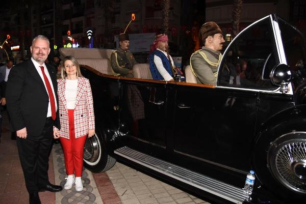 Tatlısu mevkiinde toplanan vatandaşlar ellerindeki Türk bayraklarıyla ve meşalelerle kortej yürüyüşü gerçekleştirdi. Yaklaşık 29 bin kişinin katıldığı tahmin edilen yürüyüşte Menemen Belediye Başkan Vekili Aydın Pehlivan eşi, kızı ve belediye ailesiyle hemşehrilerini selamladı. Atatürk ve dönemin kıyafetleriyle giydirilmiş mumya askerlerin yer aldığı klasik otomobil de kortejdeki yerini aldı.