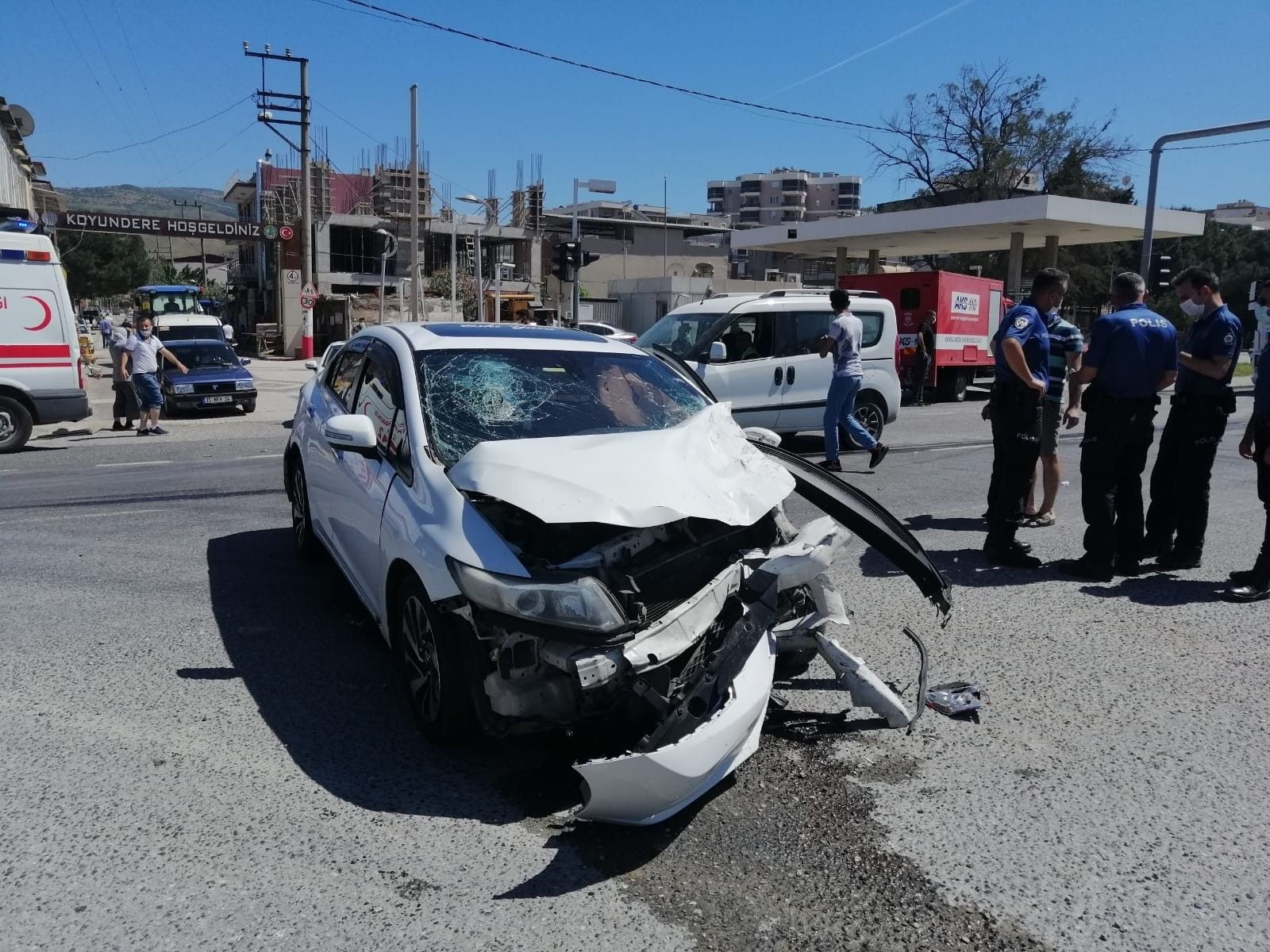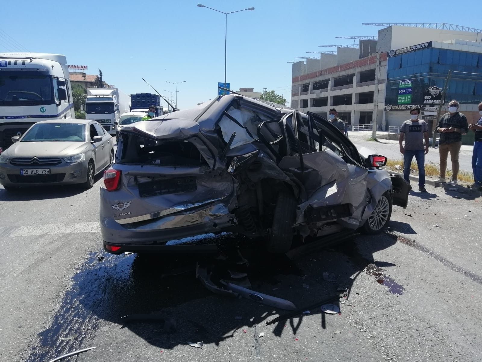 Kaza, Menemen ilçesinde meydana geldi. Aliağa istikametine doğru seyir halindeki Ozan K.'nın kullandığı 35 HDZ 84 plakalı otomobil, trafik ışıklarında sola dönüş için sol şeritte bekleyen Fırat E.'nin kullandığı 35 ADS 434 plakalı otomobile arkadan çarptı. Çarpmanın etkisiyle savrulan araç, trafik lambalarına çarparak durabildi. İhbar üzerine olay yerine çok sayıda polis ve 112 Sağlık ekibi sevk edildi. Her iki otomobil içerisinde sıkışan yaralılar, itfaiye ekiplerinin yardımıyla çıkartılarak Çiğli Eğitim ve Araştırma Hastanesi'ne kaldırıldı. Kazada 4 kişi yaralanırken, yaralılardan 1 kişinin durumunun ağır olduğu öğrenildi.