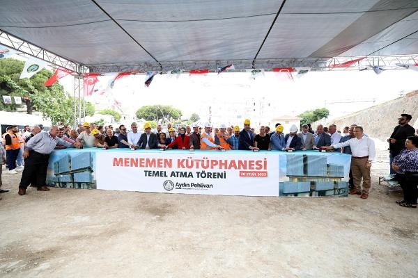 5 bin 500 metrekarelik alanda yükselecek olan ve farklı yaş gruplarına uygun okuma alanları, engelsiz kütüphane alanları, fuaye ve sergi alanları, çok amaçlı konferans salonu, grup ve bireysel çalışma alanları, oyun salonları, cep sineması, araştırma salonu, matematik ve seramik atölyeleri ve yeme içme alanlarının bulunacağı tesisi için Menemen Belediye Başkan Vekili Aydın Pehlivan'ın ev sahipliğinde düzenlenen törene AK Parti Genel Başkan Yardımcısı Hamza Dağ, Menemen Kaymakamı Fatih Yılmaz, İzmir İl Kültür ve Turizm Müdürü Murat Karaçanta, AK Parti İzmir İl Kadın Kolları Başkanı Dilek Yıldız Büyükdağ, AK Parti Menemen İlçe Başkanı Hakkı Durmaz, MHP Menemen İlçe Başkanı Barbaros Çalışçı, kamu kurumları ve sivil toplum kuruluşlarının başkan ve yöneticileri, önceki dönem belde belediye başkanları, belediye meclis üyeleri, muhtarlar ve Menemenliler katıldı. Saygı duruşu ve İstiklal Marşı'nın okunmasının ardından Menemen Belediyesi Halk Oyunları Grubu'nun gösterisi ilgiyle izlendi.