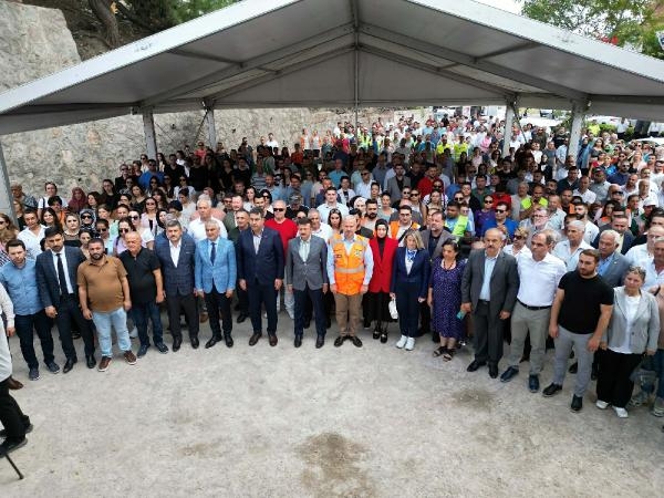 Protokol üyeleri, Menemen Müftüsü Mehmet Seven'in okuduğu duanın ardından hazırlanan butonlara basarak kazandırılacak tesisin temelini attı.