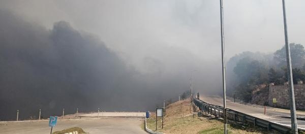 Öte yandan yoğun duman nedeniyle Bergama-Dikili yolu, ulaşıma kapandı.