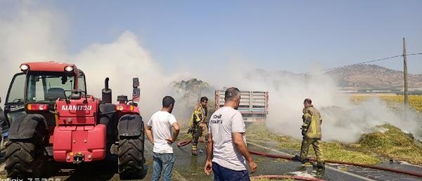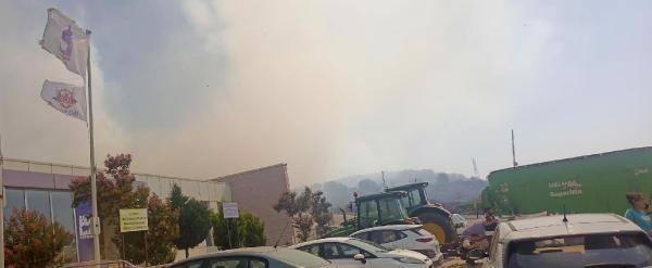 İzmir'in Bergama ilçesinde makilikte başlayan yangına müdahale sürüyor. Bölgedeki süt fabrikasına sıçrayan yangında, samanlıkların ve hayvan damlarının yandığı belirtildi. Tesis görevlilerinin yangını fark edip, meraya salmasıyla hayvanlar, yangından kurtuldu. Ayrıca 2 TIR, yanarak hasar gördü.