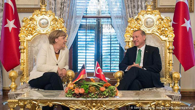 Almanya Başbakanı Angela Merkel veda ziyareti için bugün Türkiye'ye geldi. Erdoğan ve Merkel, Huber Köşkü'ndeki görüşme öncesinde köşkün balkonuna çıkarak İstanbul Boğazı'nı izledi. Cumhurbaşkanı Erdoğan, Merkel'e Boğaz hakkında bilgi verdi.