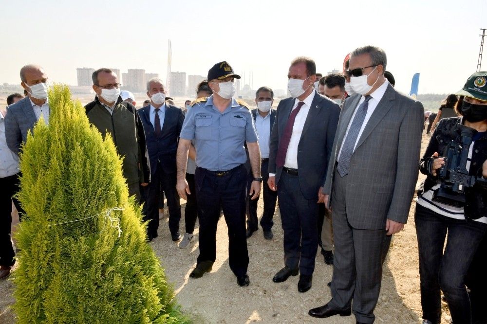 Toroslar ilçesi Korukent Mahallesinde pandemi tedbirleri çerçevesinde düzenlenen etkinliğe Akdeniz Bölge ve Garnizon Komutanı Tuğamiral Fuat Gedik, Büyükşehir Belediye Başkanı Vahap Seçer, Orman Bölge Müdürü Kenan Akduman, il protokolü üyeleri, kamu kurum ve kuruluşları ile sivil toplum kuruluş temsilcileri, öğrenciler ve öğretmenler katıldı.
