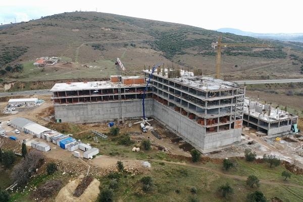 İZMİR'in Aliağa Belediyesi ile Dokuz Eylül Üniversitesi işbirliğinde Çaltılıdere Mahallesi'nde projelendirilen İzmir'in tek Mesleki ve Çevresel Hastalıklar Hastanesi'nde kaba inşaat çalışmaları sürüyor.