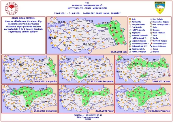 Meteoroloji Genel Müdürlüğü'nden yapılan uyarıda ''Hava sıcaklıklarının, Karadeniz kıyı kesimlerinde mevsim normalleri civarında, diğer yerlerde mevsim normallerinin 4 ila 7 derece üzerinde seyredeceği tahmin ediliyor'' denildi.