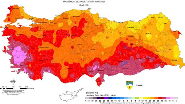 Sıcaklıkların bu hafta ciddi derecede yükseleceğini açıklayan Meteoroloji konuyla ilgili bir harita yayınladı. Haritadaki mor alanlara dikkat çekerken bu illerde yaşayanların Afrika’dan gelen sıcak hava dalgası ile kavrulacağını belirtti.