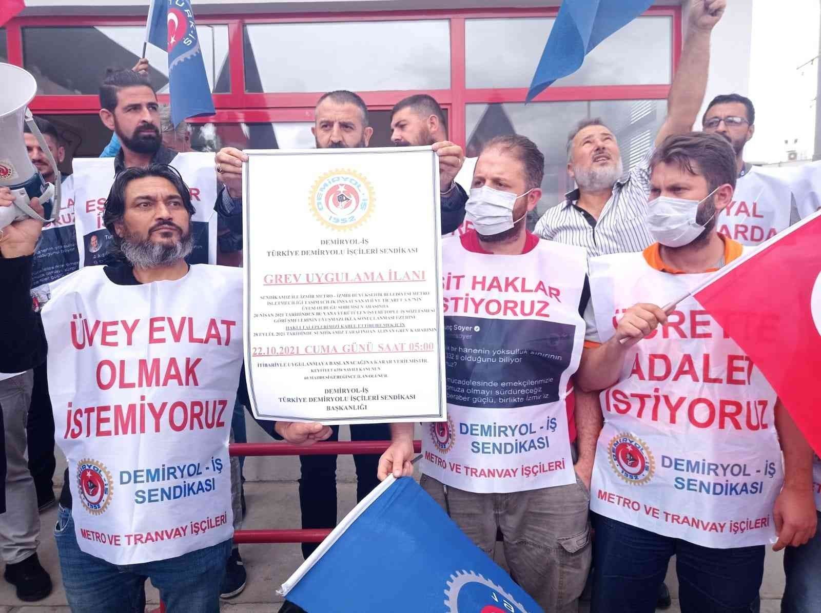 İzmir ulaşımının önemli unsurlarından İzmir Metro'da toplamda 627 çalışanı kapsayan toplu iş sözleşmesi görüşmelerinde uzlaşı sağlanamadı. İzmir Büyükşehir Belediyesi'nin şirketlerinden İzmir Metro A.Ş. ve işveren sendikası Sosyal Demokrat Kamu İşverenleri Sendikası (SODEM-SEN) ile metro ve tramvayda yetkili olan Demiryol-İş Sendikası arasında gerçekleşen görüşmelerde 69 maddeden ücretle ilgili 9'unda uzlaşılamayınca, işçiler İzmir Metro A.Ş. önünde geçtiğimiz hafta eylem yapılmıştı. Bugün yapılan açıklamada ise, toplu iş sözleşmelerinde anlaşma sağlanamaması dolayısıyla 22 Ekim günü saat 05.00'te greve çıkılacağı açıklandı.