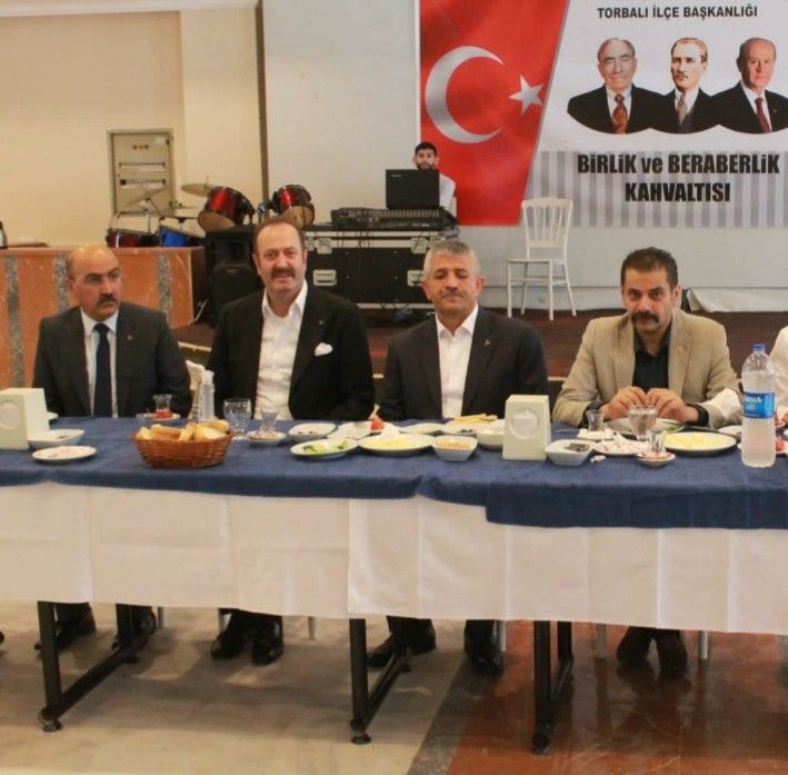 Milliyetçi Hareket Partisi (MHP) Torbalı İlçe Başkanlığı ve İzmir İl Başkanlığı, Torbalı'da düzenlenen "birlik ve beraberlik" kahvaltısında bir araya geldi. Kahvaltıya Milletvekilleri Tamer Osmanağaoğlu ve Hasan Kalyoncu'nun yanı sıra MHP İzmir İl Başkanı Veysel Şahin ve il yöneticileri, Torbalı İlçe Başkanı Veli Kaçar ve ilçe yönetimi, belediye meclis üyeleri ve çok sayıda partili katıldı.