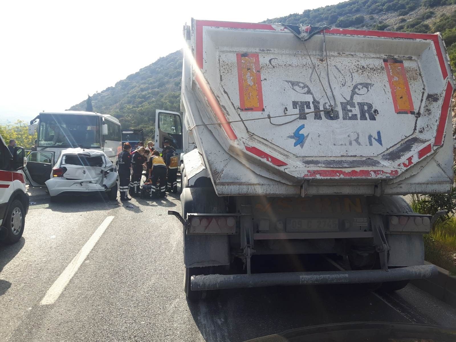 Milas-Bodrum karayolu Karakaya Mevkiinde zincirleme trafik kazası meydana geldi. Tır, minibüs ve otomobillerin karıştığı kazada 2 kişi yaralandı.