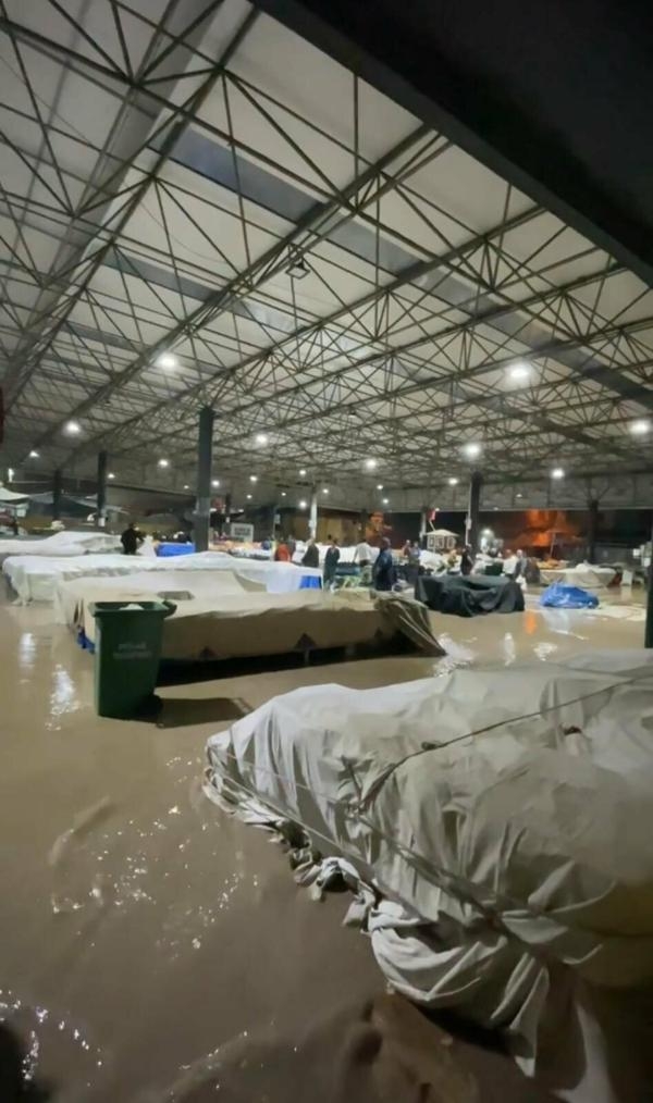 MUĞLA'nın Milas ilçesinde şiddetli yağmur nedeniyle, Semt Pazarı sular altında kaldı.