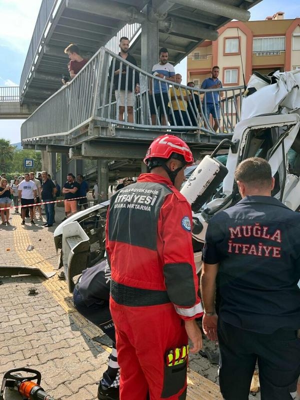 Muğla'nın Milas ilçesinde, üst geçidin ayağına çarpan TIR'ın şoförü Cafer Kaya (37), hayatını kaybetti.